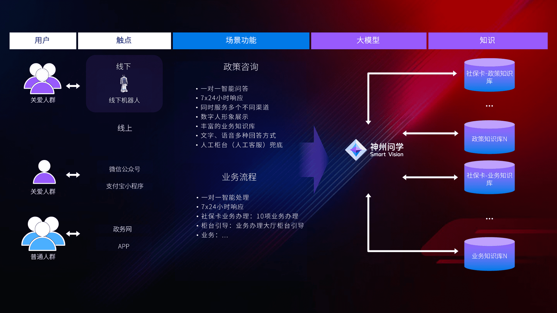 • 线上线下全覆盖:线上提供微信公众号、、支付宝小程序、、、、政务网、、app多种渠道,,,与线下机器人形成完整服务体系。。。