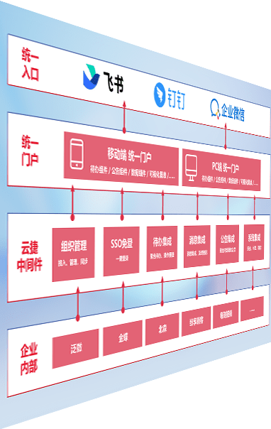 对协作平台提供支持服务,,,支持企业应用与协作平台对接,,,包含组织同步、、、消息集成、、待办集成等。。支持目前主流的协作平台:钉钉、、、企微和飞书。。。